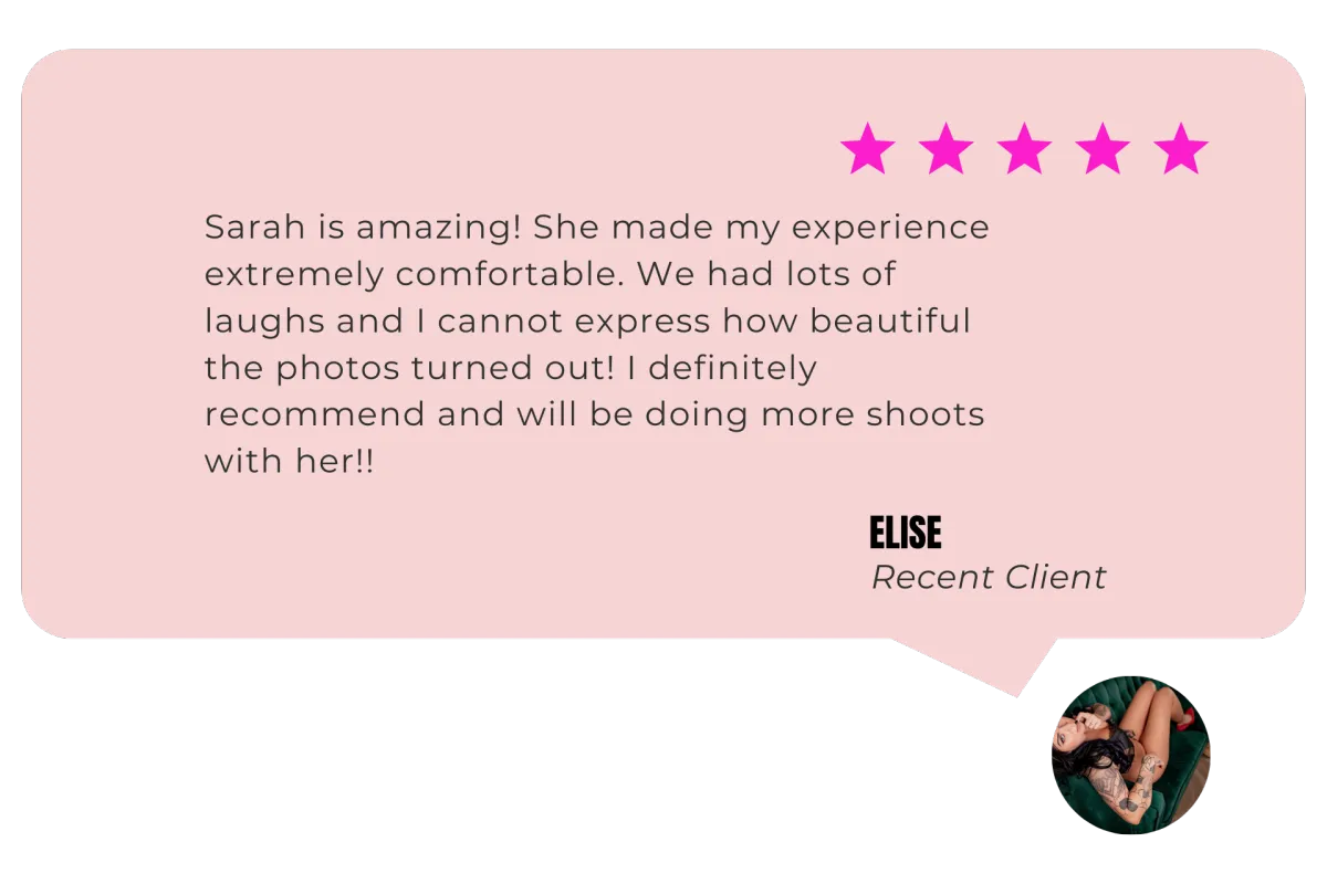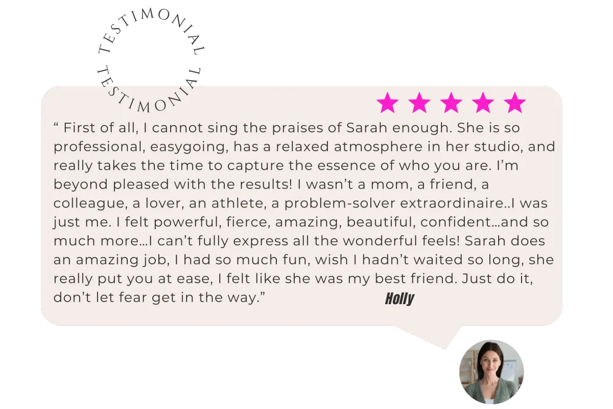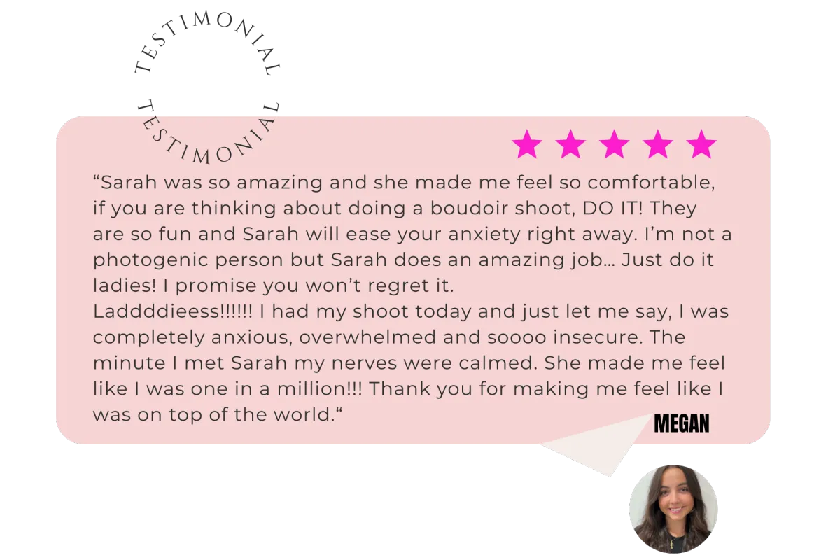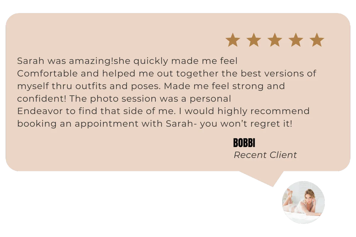 Girl, that’s the point — you don’t need to know how. That’s my job. I’ll guide you through every pose and expression so you feel confident, comfortable, and amazing. Most of my clients are first-timers, and they leave saying, “That was way easier than I thought!”